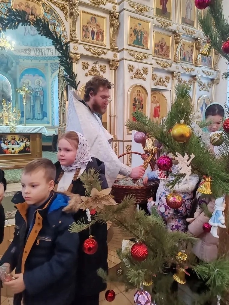 Со светлым праздником Рождества Христова детей поздравил настоятель храма иерей Георгий Сакович.